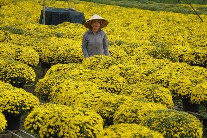Vinh LongTens of thousands of pots of raspberry chrysanthemums in Cho Lach flower village bloomed more than half a month…