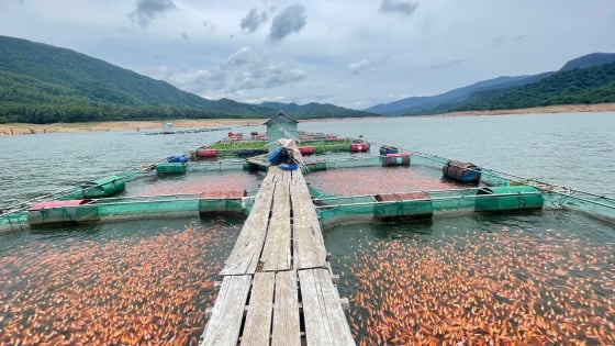 Dinh Binh reservoir, located in Vinh Thanh district, Binh Dinh province, has a storage capacity of up to 226 million cubic meters. With a year-round abundant water supply, Dinh Binh is gradually being effectively utilized to develop cage fish farming within the irrigation reservoir, oriented toward commercial production and linked to a sustainable product consumption chain.