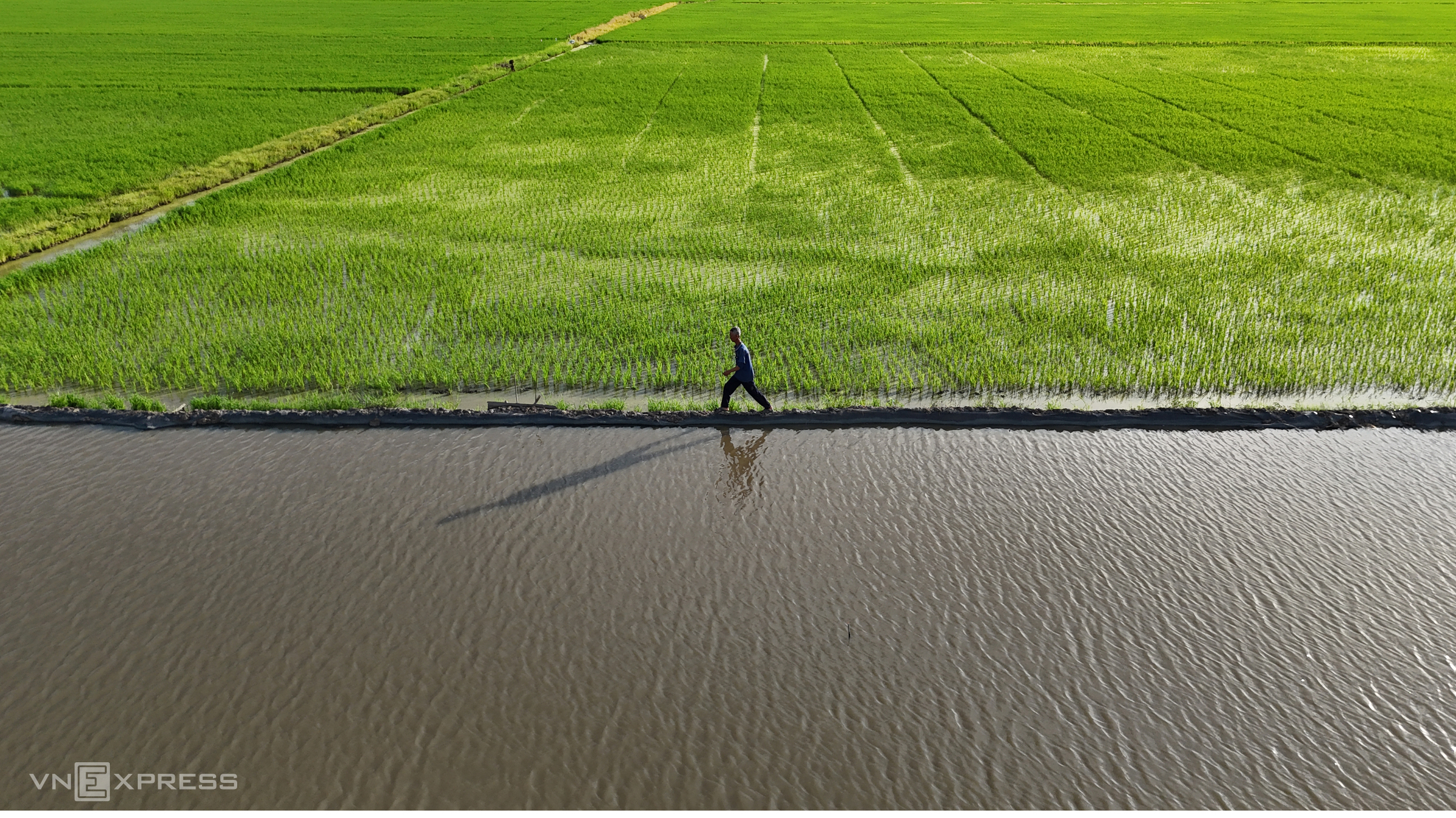 On the dike separating the three-crop rice fields and the two-crop rice fields that are releasing water, Mr. Dung pointed towards the vast field: “In the past, floods flooded the roofs of our houses, but our people could still survive thanks to fish and alluvium.”