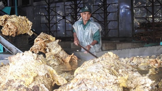 Processing rubber latex at a factory of the Vietnam Rubber Industry Group. Photo: Son Trang.